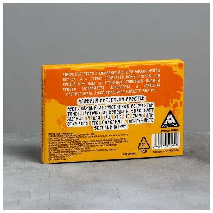 Купить игра для компании "фанты буханты" 20 карт от 100 руб. с доставкой до пункта выдачи в Иланском. Интернет магазин ДекаМаркет. Оплата при получении.